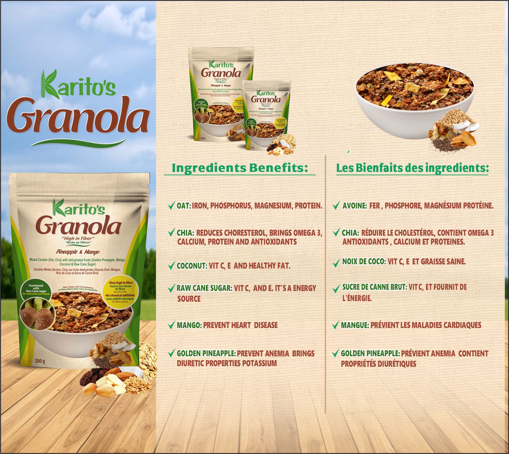 KARITO´S GRANOLA DEHYDRATED FRUITS (golden pineapple and mango) FOR EXPORT